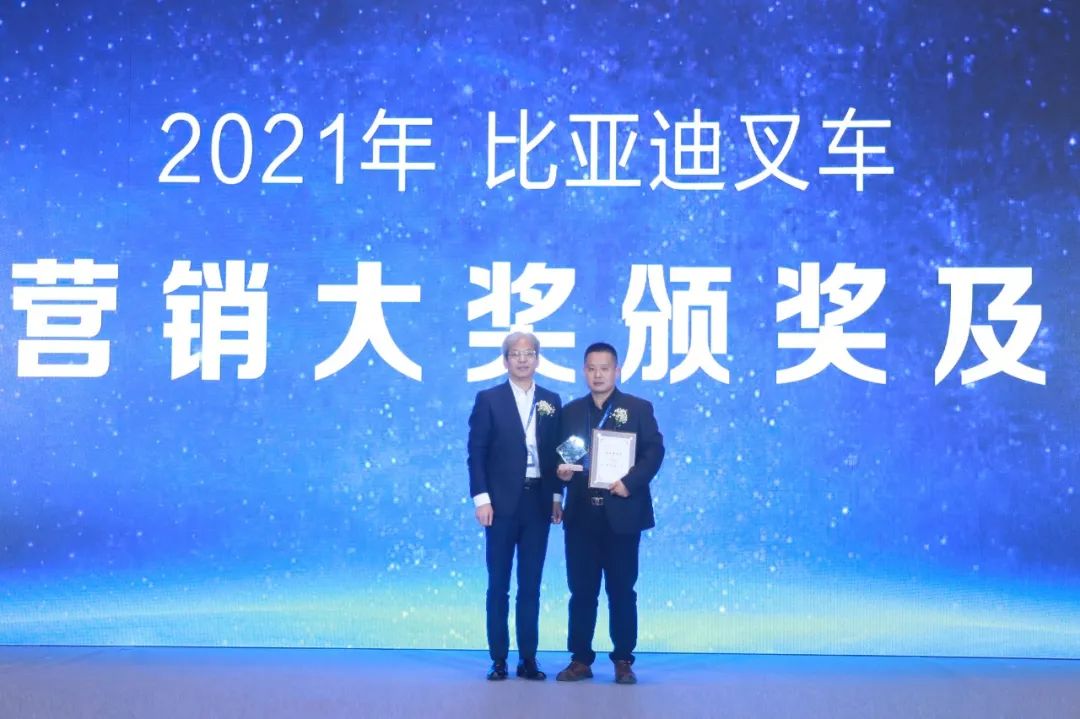 經過2年的快速累積和努力,2021年,銳意進取的貨叉叉在比亞迪叉車的大力支持下,緊抓新能源電動叉車發展機遇,在陜西、江蘇、浙江設立了全資子公司,并以山東區域發展為模板,快速籌建完成相關區域的省級城市展廳,成為比亞迪叉車國內銷售體系中快速崛起的一顆閃耀之星。